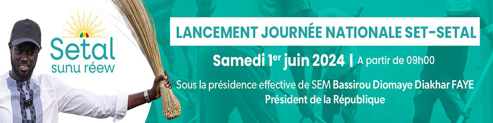 Le samedi 1er juin 2024, le Président de la République, Bassirou Diomaye Faye, accompagné des membres du gouvernement, sera activement engagé sur le terrain pour participer à une initiative nationale d’investissement humain axée sur l’assainissement.